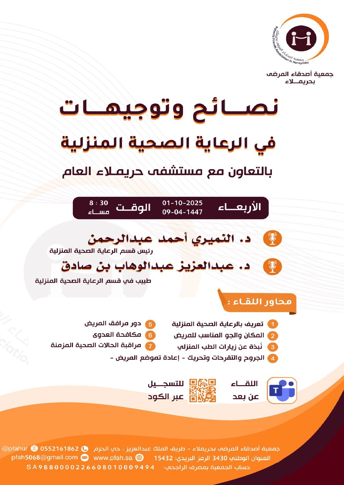 ــ المساهمة في تقديم المساعدات العينية للمرضى المنزليين وأسرهم المستحقين