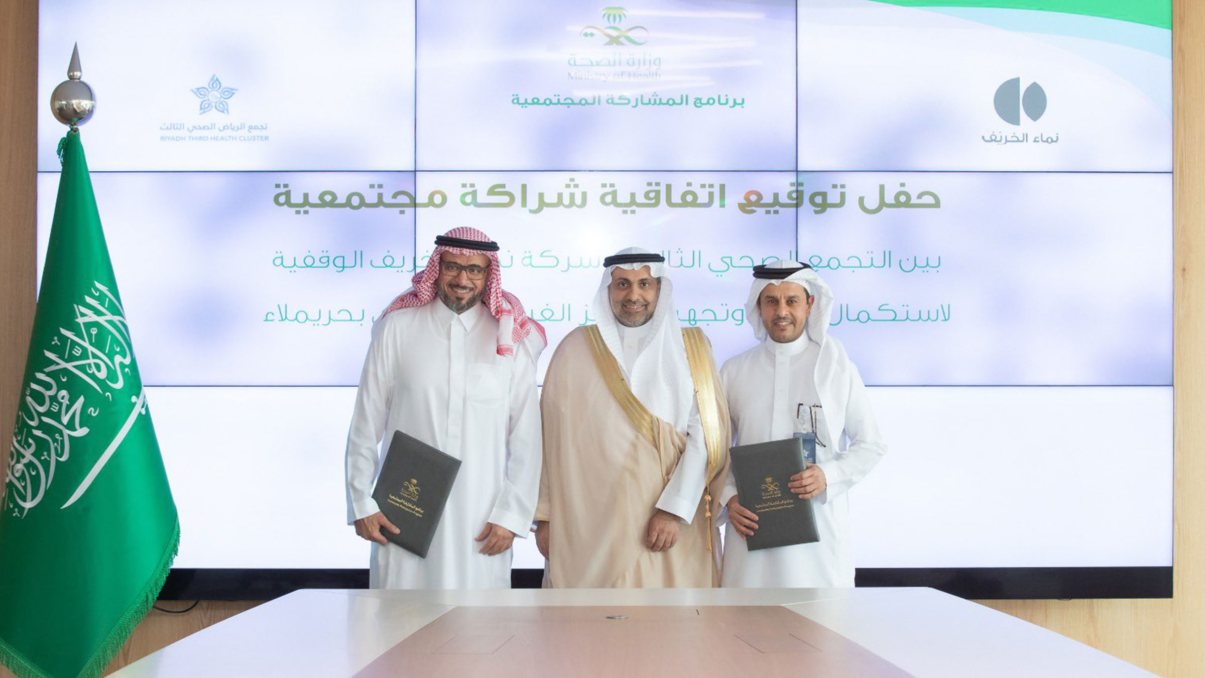 بحضور معالي وزير الصحة الرئيس التنفيذي بــ #تجمع_الرياض_الصحي_الثالث وشركة نماء الخريف الوقفية يوقعان اتفاقية شراكة مجتمعية لإستكمال الإنشاء والتجهيز لمركز الغسيل الكلوي بسعة 15 سرير في #مستشفى_حريملاء_العام وتأتي الاتفاقية في إطار تعزيز مساهمة القطاع الغير ربحي في التنمية الصحية وفق رؤية 2030